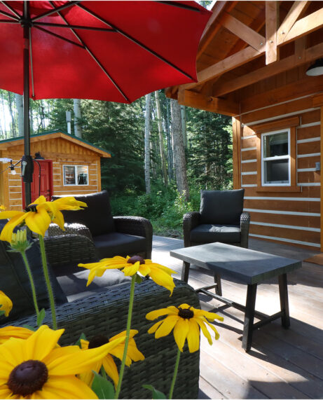 After parking your vehicle, you’ll hike 1km on a well marked trail that ends at your private cabin. You will feel the stress melt away as you pass through sweet smelling white spruce and groves of trembling aspen. You might even see a deer along the way.